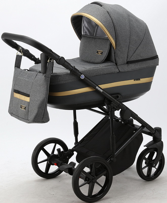 Детская коляска Adamex Rimini 3 в 1 RI07-LUX Т.СЕР+Т.СЕР.КОЖА+ЗОЛОТО.ОТДЕЛКА