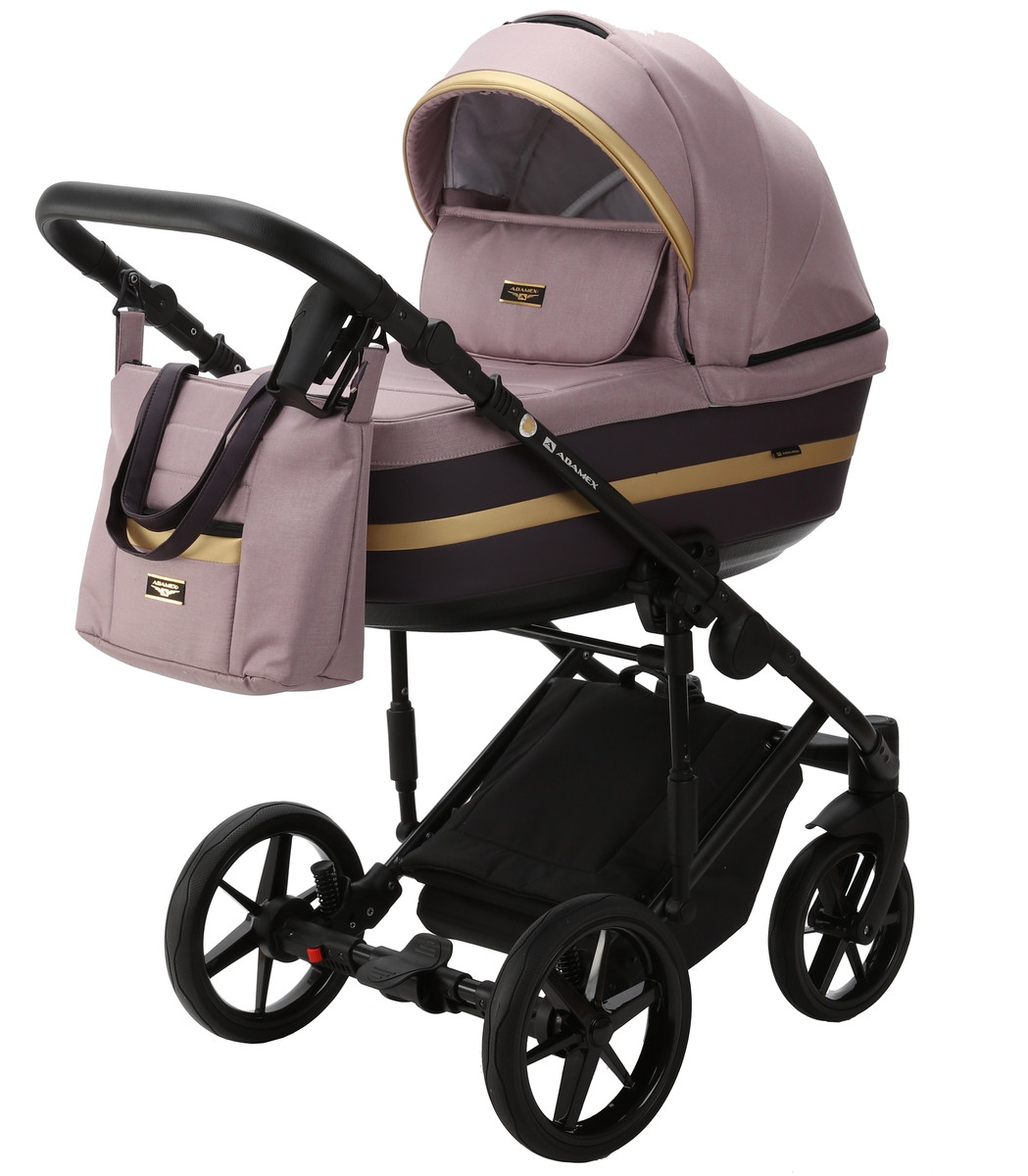 Детская коляска Adamex Rimini 3 в 1 RI14A (СЕРО-РОЗОВ+СЛИВА.ПЕРФ.КОЖА)