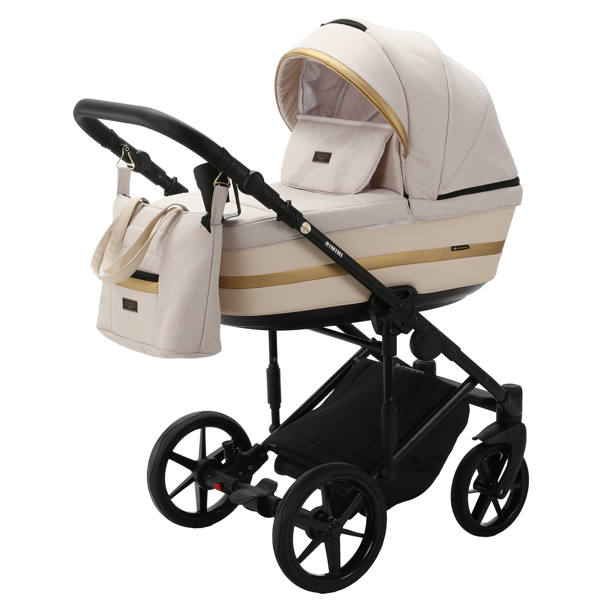 Детская коляска Adamex Rimini 3 в 1 RI17A (СВ.БЕЖ+МОЛОЧН.КОЖА+ЗОЛОТО.ОТДЕЛКА)