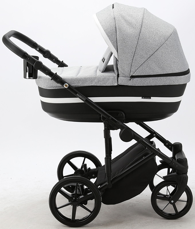 Детская коляска Adamex Rimini 3 в 1 RI32-LUX СЕР.ЖАККАРД+ЧЕРН.КОЖА+БЕЛ.ОТДЕЛКА