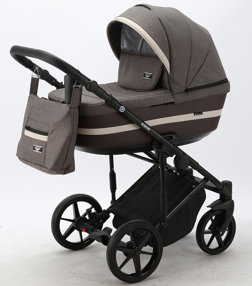Детская коляска Adamex Rimini 3 в 1 RI85 ШОКОЛАД+Т.КОРИЧНЕВ.КОЖА+СВ.БЕЖ.ОТДЕЛКА