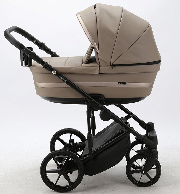Детская коляска Adamex Rimini Deluxe 2 в 1 RI215 Т.БЕЖ.КОЖА+БЕЖ.ПЕРЛ.ОТДЕЛКА
