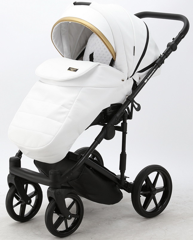 Детская коляска Adamex Rimini Deluxe 2 в 1 RI200 БЕЛ.КОЖА+ЗОЛОТО.ОТДЕЛКА