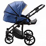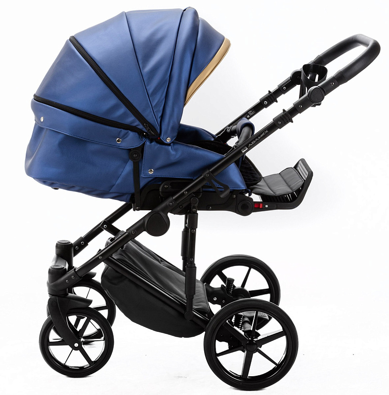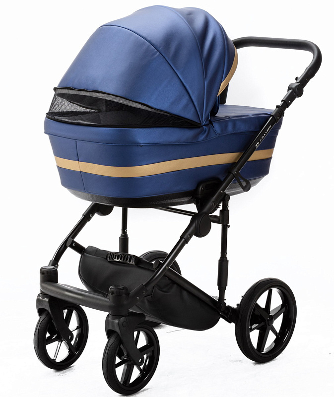 Детская коляска Adamex Rimini Deluxe 3 в 1 RI240 СИН.ПЕРЛ.КОЖА+ЗОЛОТО.ОТДЕЛКА