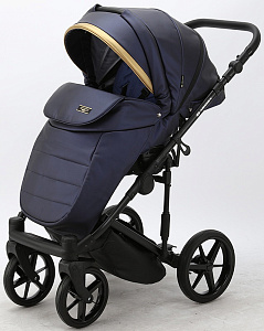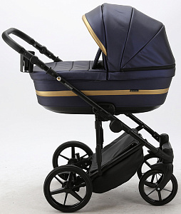 Детская коляска Adamex Rimini Deluxe 3 в 1 RI250 Т.СИН.ПЕРЛ.КОЖА+ЗОЛОТО.ОТДЕЛКА