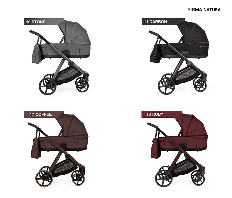 Sigma это стильная, городская и спортивная коляска. Отличительно чертой коллекции Natura является гармоничное сочетание цветов рамы и аксессуаров с тканью