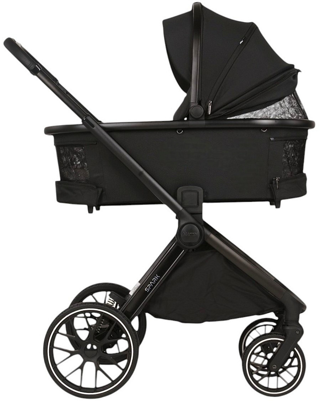 Детская коляска SPARK это модель 3 в 1 отличающаяся функциональностью и стилем. Капюшон люльки оснащен дополнительным сегментом на молнии и вентиляционным сегментом из москитной сеткой. Козырек капюшона имеет дополнительный сегмент для большей защиты от солнца. В передней и задней части люльки расположены вентиляционные окна, а в люльке толстый, удобный матрасик. Откидной клапан на накидке защищает ребёнка от неблагоприятных погодных условий, а смотровое окошко под клапанам помогает поддерживать визуальный контакт с ребёнком. В комплект коляски входит вместительная сумка с инновационной, очень удобной магнитной застежкой, а также сумочка для мелочей, которую вы можете прикрепить к боковой части люльки, и универсальные противомоскитная сетка и дождевик. Мягкая люлька складывается, что помогает экономить место в багажнике в путешествиях. Благодаря передней и задней амортизации коляска обеспечивает комфортную езду по всем поверхностям, а телескопическая ручка с широким диапазоном регулировки адаптируется к росту каждого родителя. В капюшоне прогулочного блока расположено вентиляционное окно с москитной сеткой и дополнительный сегмент на молнии. Спинка прогулочного блока регулируется в 3-х положениях. Барьерка (поручень) прогулочного блока откидной с поворотными механизмами, а подножка имеет 3-и уровня регуляции. Сиденье оснащено 5-точечными ремнями безопасности с магнитной пряжкой и мягкими накладками, а также удобным мягким матрасом. Прогулочный блок может быть установлен в обоих направлениях движения, а также шасси (раму) можно сложить вместе с прогулочным блоком вне зависимости от направления его установки. В коляске SPARK имеются в комплекте стандартные (более низкие) и дополнительные адаптеры, которые обеспечивают удобство использования независимо от роста родителей.