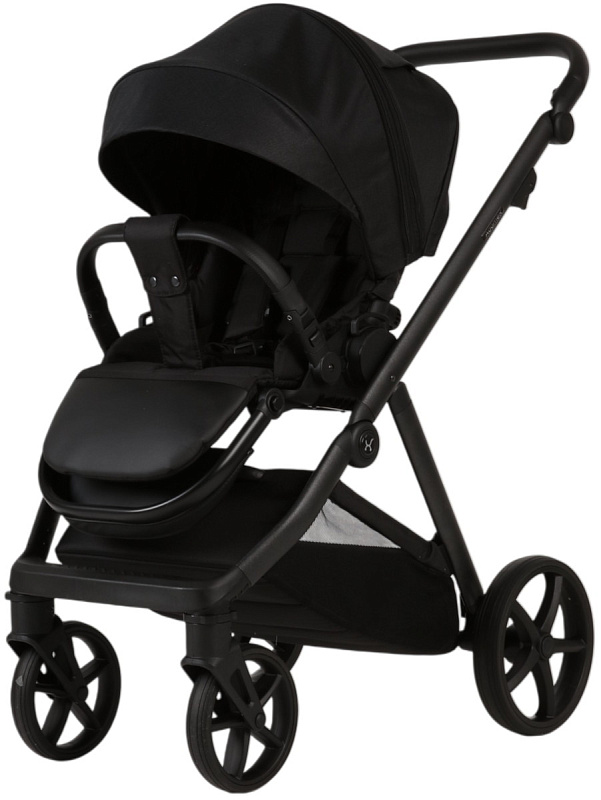 Рама коляски оборудована интеллектуальным тормозом, который не пачкает и не повреждает обувь. Механизм складывания быстрый и интуитивно понятный, а удобная ручка позволяет легко переносить раму. Внизу расположена вместительная корзина, куда можно положить покупки и необходимые вещи для прогулки.