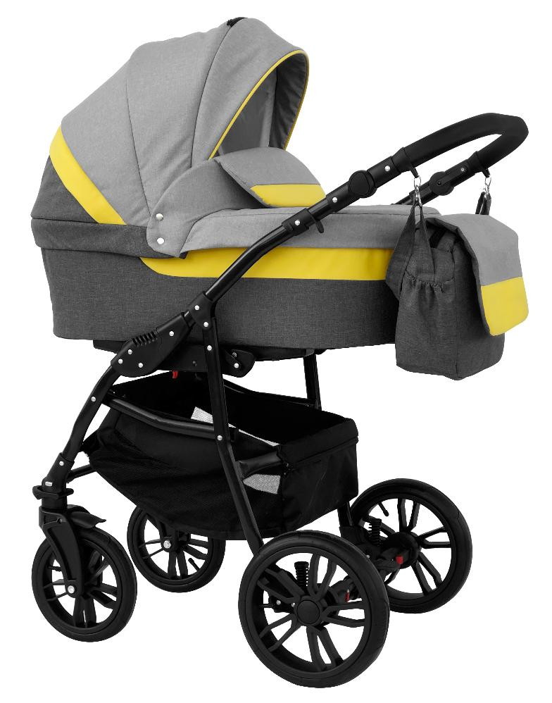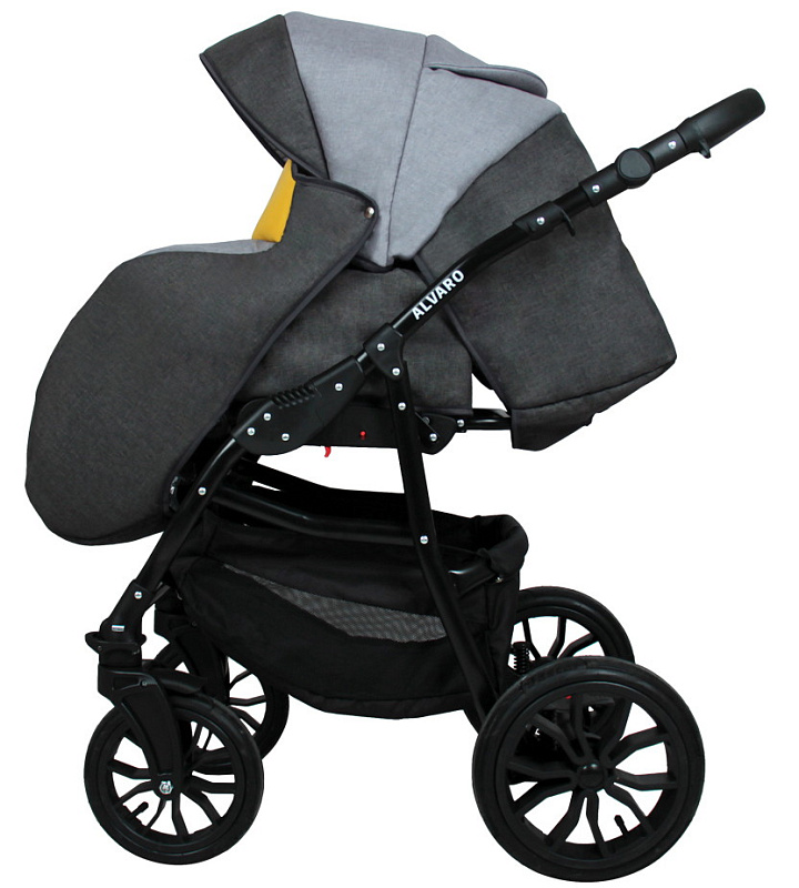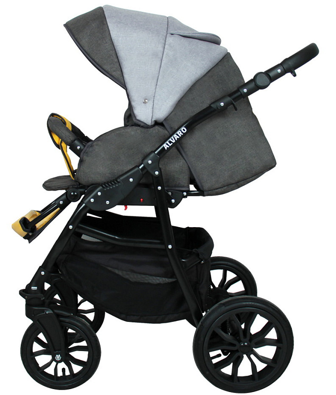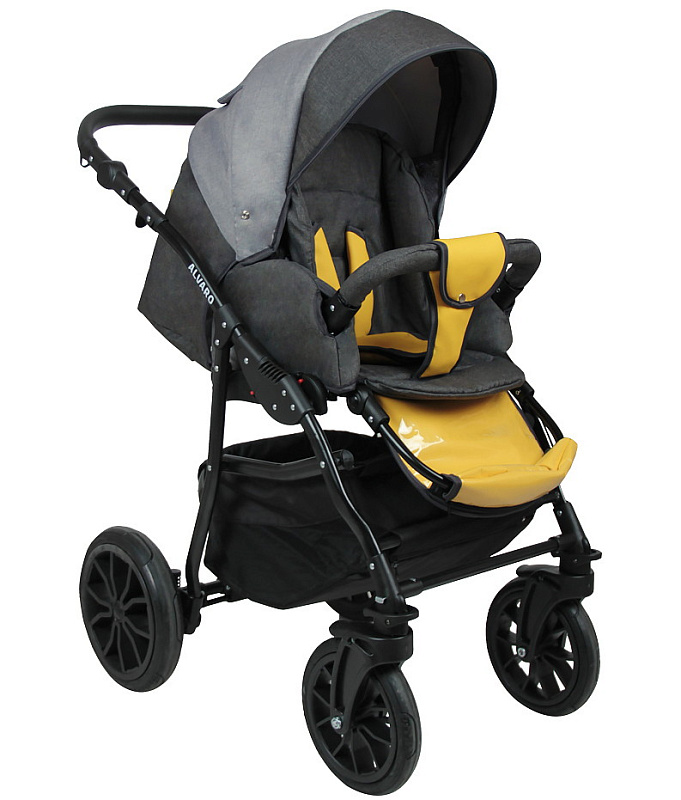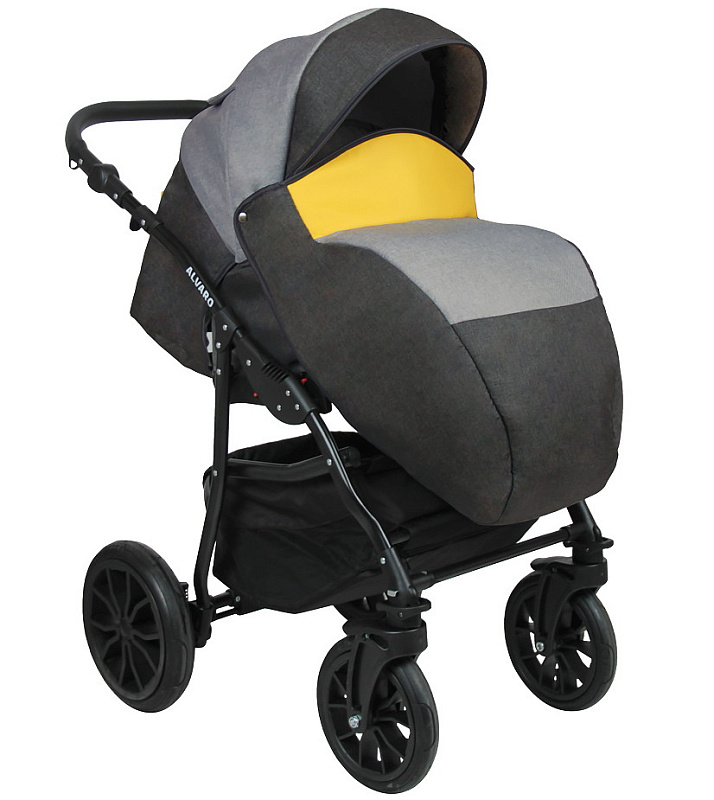 Детская коляска Alis Alvaro 2 в 1 Al 02 т.серый+св.серый+желтая кожа