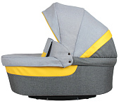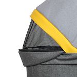 Каркасная люлька - глубокая и просторная - снаружи обшита текстилем с водоотталкивающей пропиткой с яркими вставками из экокожи. Внутренний чехол из 100% хлопка снимается для стирки. Наполнитель матрасика - ППУ. При необходимости можно поднять подголовник, что становится актуальным, когда ребенок подрастает и начинает интересоваться окружающим миром, но для прогулочного блока еще рановато. Накидка на ножки надежно фиксируется кнопками, предусмотрен ветрозащитный отворот. От солнца защитит козырек, кроме того, в жаркую погоду пригодится вставка из москитной сетки для вентиляции, которая закрывается текстильным клапаном на молнии. Снятая люлька мягко и безопасно укачивает малыша.