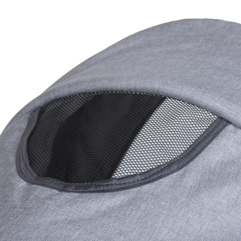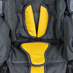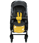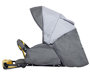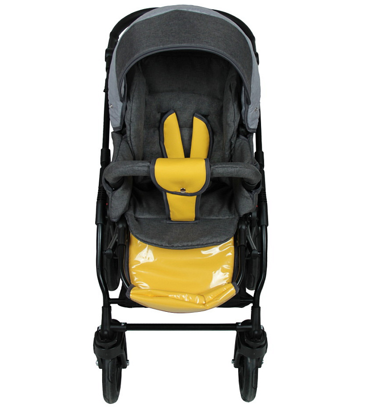 Дизайн выполнен с вставками из экокожи на накидке, из этого же материала - подножка, межпаховая перемычка и накладки на плечах и замке ремней безопасности. Сидение раскладывается в комфортное спальное место. Съемный бампер мягкий, обтянут текстилем. В капюшоне - вентиляционное окошко с текстильным клапаном. На задней стенке накидки - удобный кармашек для мелочей на молнии с яркой отделкой.
