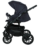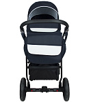 Рама складывается "книжкой". Передние колеса поворачиваются на 360 градусов и при необходимости фиксируются. Амортизаторы - пружинные, регулируемые, жесткость можно увеличить, когда ребенок подрастет. Надувные резиновые колеса достаточно проходимые и обеспечивают мягкий ход. В комплекте съемная открытая текстильная сумка для покупок.