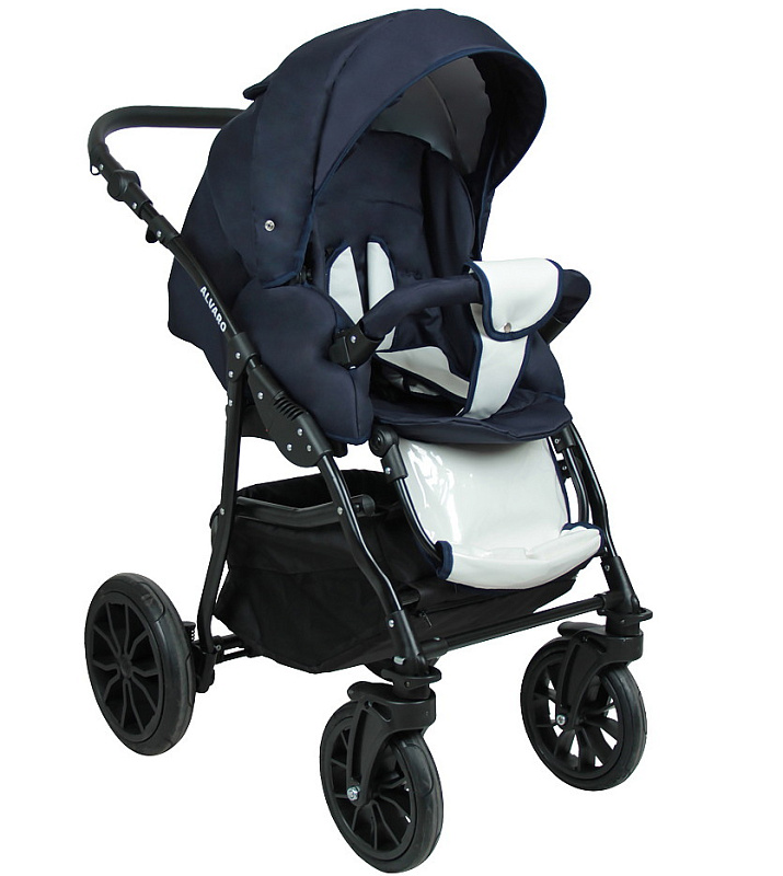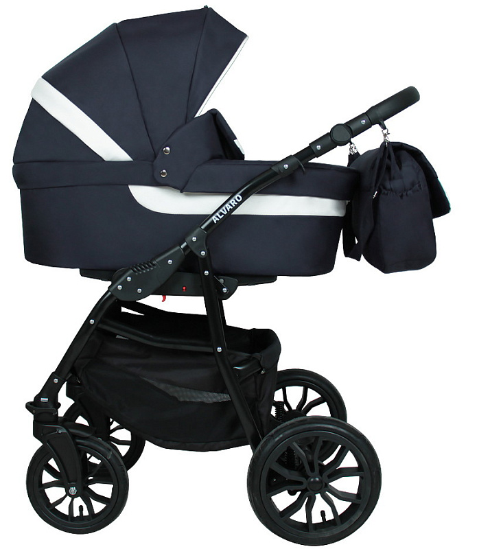 Детская коляска Alis Alvaro 2 в 1 Al 07 т.синий+белая кожа
