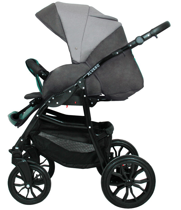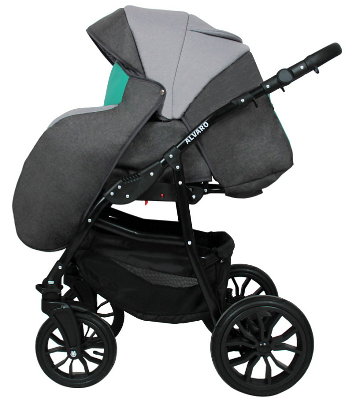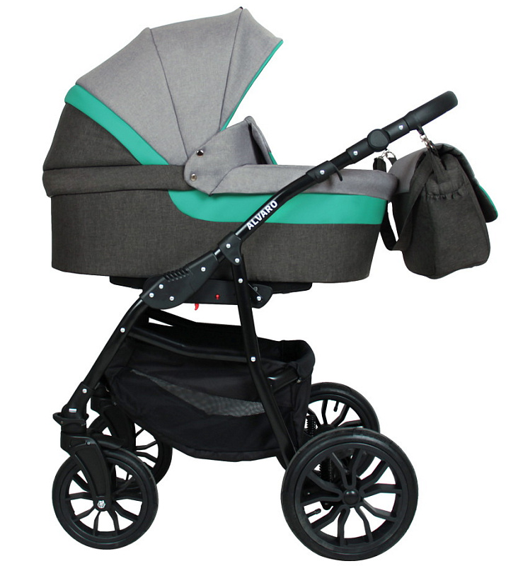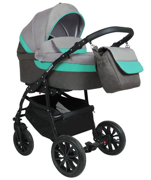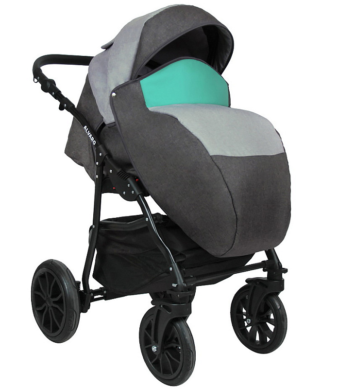 Детская коляска Alis Alvaro F 3 в 1 AI 01 т.серый+св.серый+бирюзовая кожа
