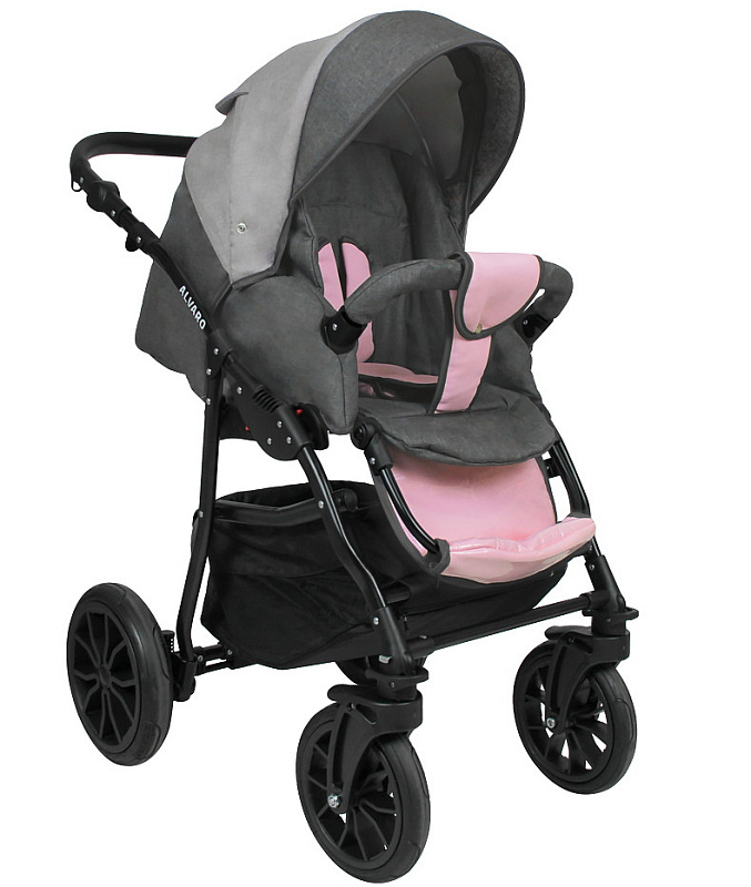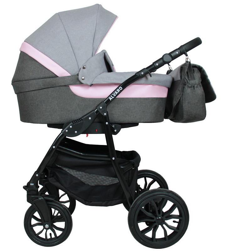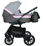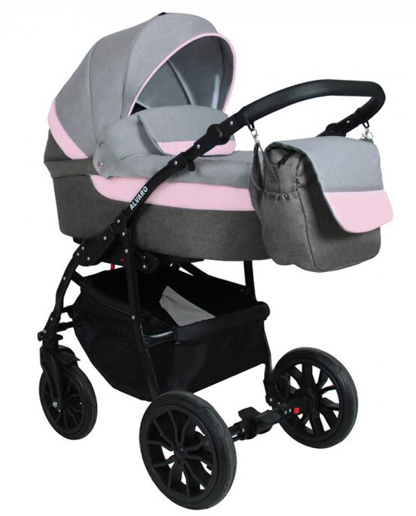 Детская коляска Alis Alvaro F 3 в 1 Al 03 т.серый+св.серый+розовая кожа