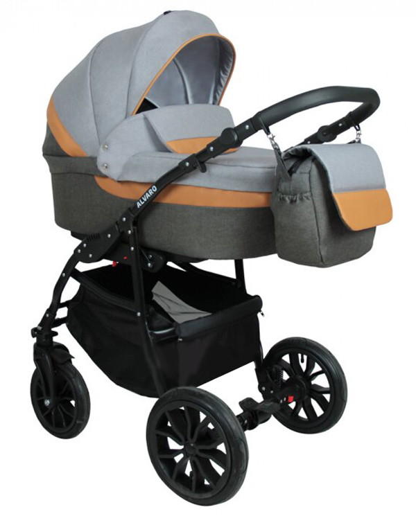 Детская коляска Alis Alvaro F 3 в 1 Al 05 т.серый+св.серый+рыжая кожа