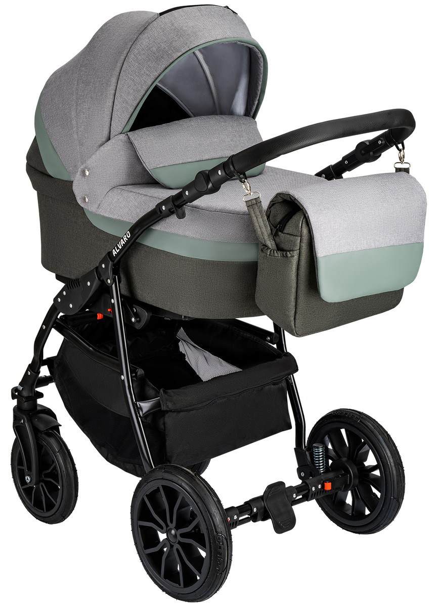 Детская коляска Alis Alvaro F 3 в 1 Al 10 т.серый+св.серый+шалфей кожа