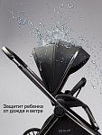 Для защиты от осадков и ветра предусмотрен глубокий капор с ветрозащитой, теплый чехол на ножки и дождевик, а также есть дополнительное окно, которое можно закрыть при необходимости.