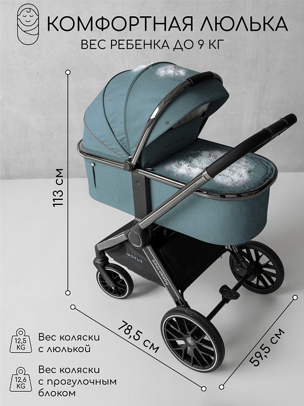 Детская коляска AmaroBaby Motus V2 2 в 1 бирюзовый