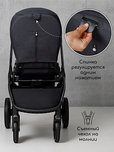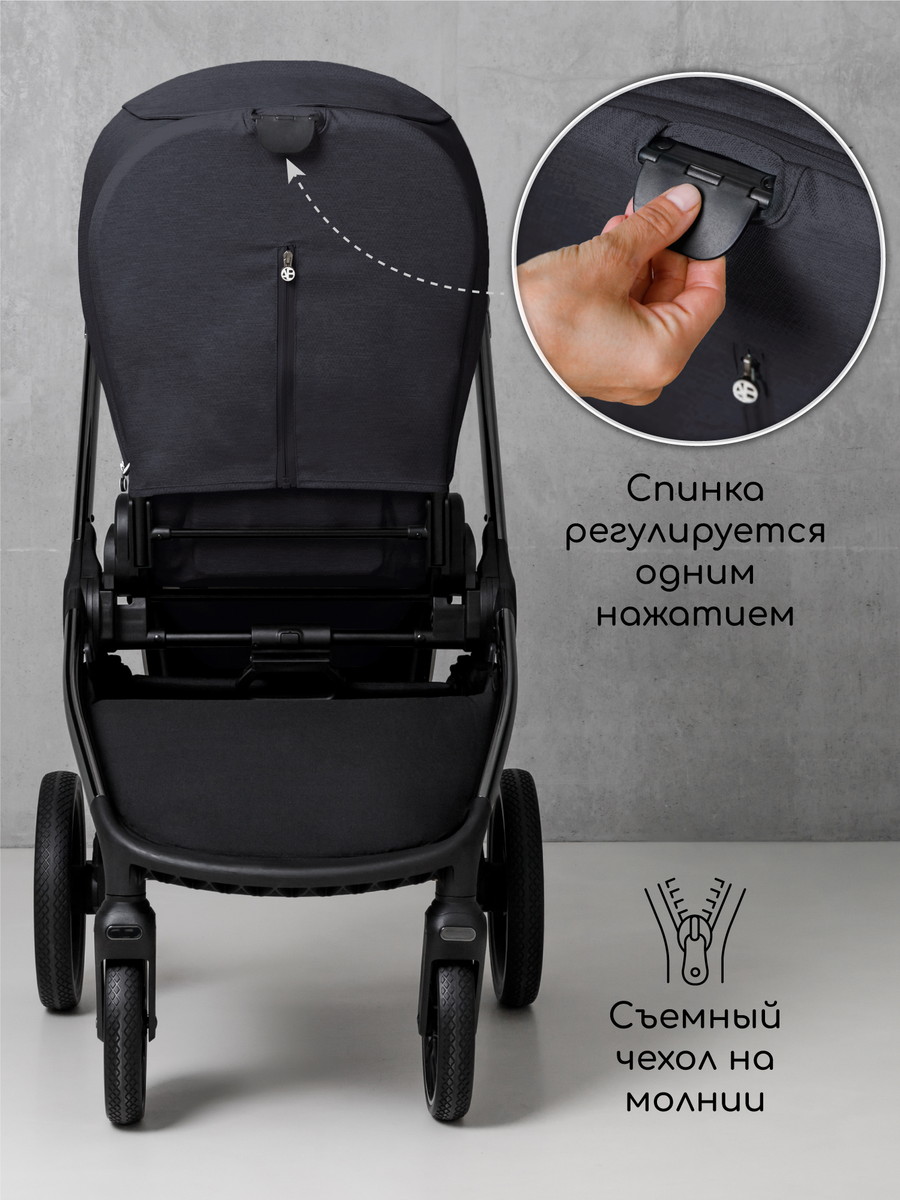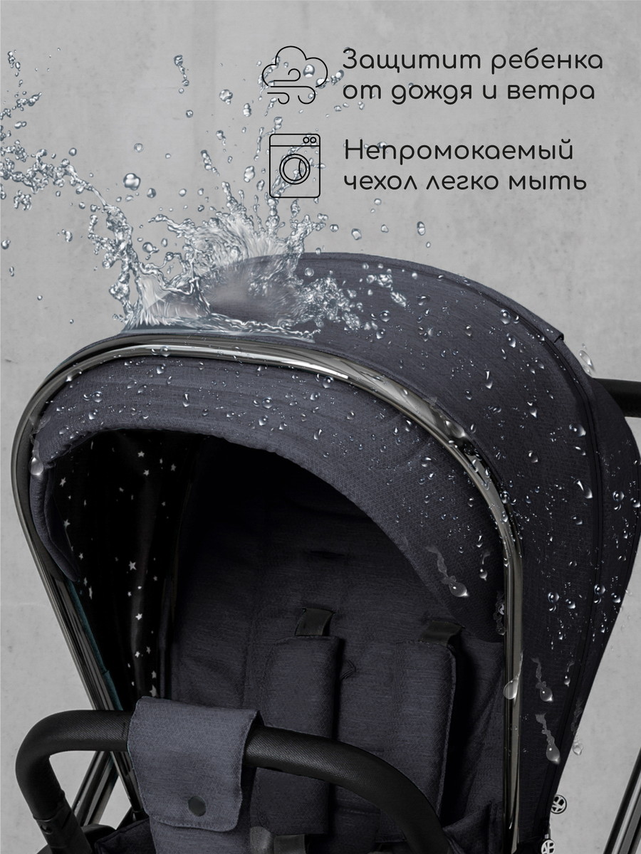 Внутреннее пространство коляски окутано нежной заботой: обивка и чехол матрасика выполнены в успокаивающем сером цвете, а плотная и мягкая ткань дарит ощущение облака. Увеличенная толщина и плотность матрасика обеспечат малышу сладкие сны во время каждой прогулки.
