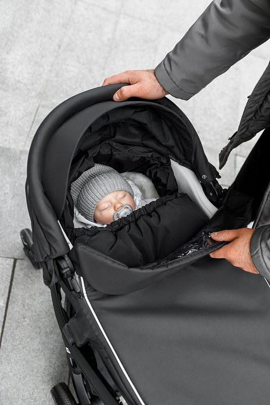 - Благодаря возможности крепления накидки для ног к капюшону малыш надежно защищен от холода