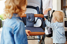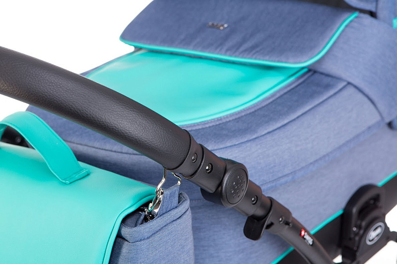 - Металлическая корзина для покупок дополнена вместительной и стильной сумкой для мамы, которая может фиксироваться на регулируемой ручке.
