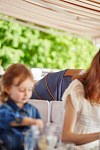 - Подножка и спинка регулируются, адаптируясь под пожелания ребенка, раскрываясь до горизонтального положения.