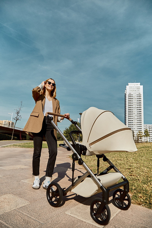 Детская коляска Anex Eli x Avionaut Cosmo 3 в 1– ваша стильная коляска без усилий. Изготовлена из экологически чистых материалов премиум-класса, Eli создана для родителей, которые ищут стильный выбор без компромисса между комфортом и безопасностью ребенка. Благодаря минималистичному подходу к дизайну, Eli передает элегантный вневременной стиль, предлагая простоту в использовании благодаря легкому, эргономичному дизайну и гибкости адаптации к потребностям родителей. Люлька изготовлена из EPP материала (инновационного вспененного полипропилена), который на 100% пригоден для вторичной переработки. Внутреннее покрытие из экологически чистой бамбуковой ткани. Матрас изготовлен из натурального материала Sorona, известного своими антибактериальными и дышащими свойствами. Полиуретановые колеса изготовлены по передовой технологии, что делает их более легкими, мягкими, повышая маневренность и износостойкость, чтобы прогулка всегда была плавной. Сидение складывается в обоих направлениях, что позволяет родителям удобно переносить коляску при необходимости. Функция самостоятельного стояния в сложенном виде обеспечивает экономию места, а входящие в комплект адаптеры высоты создают универсальность и комфорт для семей.
