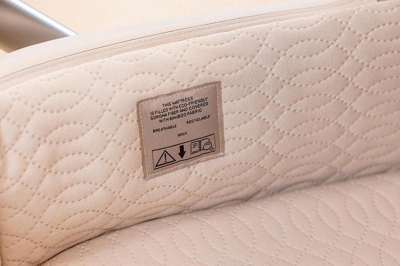 Матрас наполнен полностью натуральным материалом Sorona, который изготавливается из кукурузы. Этот матрас не только дышащий, но и антибактериальный и экологически безопасный для ребенка. Он мягкий и приятный на ощупь.
