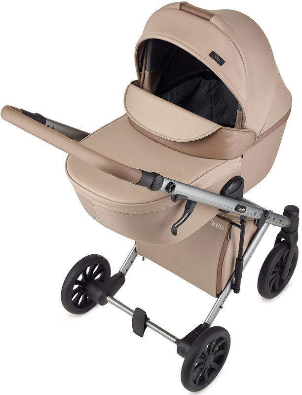 Система памяти кнопок поможет одной рукой изменить положение капюшона на люльке или блоке сиденья. В прогулочном блоке предусмотрена новая система регулировки спинки — откорректировать ее положение теперь проще. Пяти точечные ремни безопасности надежно удерживают малыша в коляске, но при этом не мешают ему двигаться. В коляске установлены колеса с системой Air Free, которые невозможно пробить и служат они в полтора раза дольше обычных. Рама в новой коляске складывается вместе с прогулочным блоком и теперь занимает меньше места в багажнике.