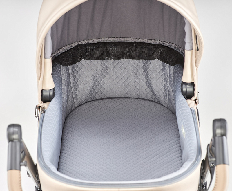 Поэтому коляска позволяет получить настоящее удовольствие от универсальных и вездеходных прогулок С первых дней малыша вы сможете оценить все преимущества большой и удобной люльки. Мы предусмотрели все что нужно для безопасных и комфортных прогулок самых маленьких — ортопедический двухслойный матрац в люльке, антиаллергеная хлопковая внутренняя поверхность. Экокожа предохраняет ребенка от прямых солнечных лучей и дождя. Кроме этого, рама оснащена автоматической системой защиты от случайного складывания. А система 3х-damper обеспечит плавность хода коляски. Anti-wobble система на поворотах стабилизирует колеса, что помогает одной рукой вести коляску. Если нужно остановиться, педаль Comfy stop поможет зафиксировать коляску на месте.