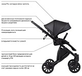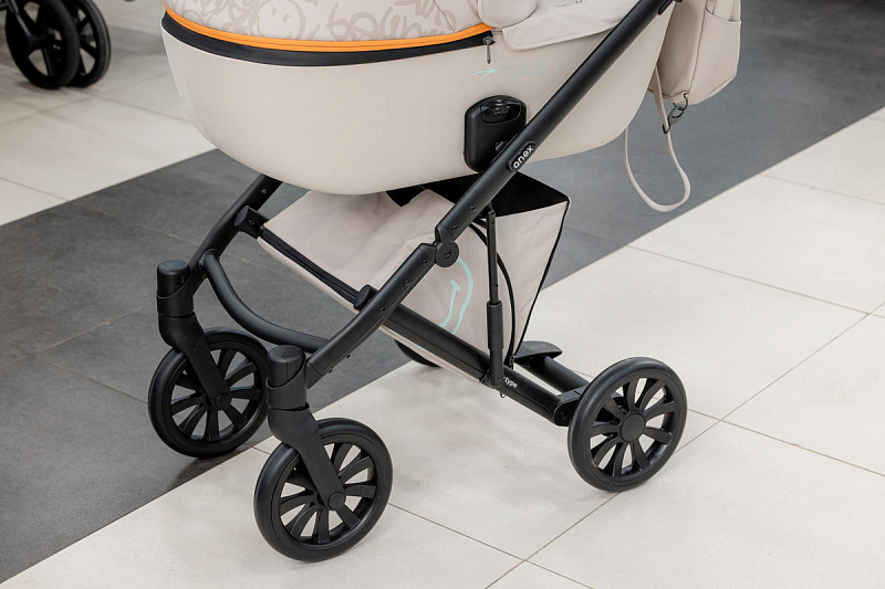 Поэтому коляска позволяет получить настоящее удовольствие от универсальных и вездеходных прогулок С первых дней малыша вы сможете оценить все преимущества большой и удобной люльки. Мы предусмотрели все что нужно для безопасных и комфортных прогулок самых маленьких — ортопедический двухслойный матрац в люльке, антиаллергеная хлопковая внутренняя поверхность. Экокожа предохраняет ребенка от прямых солнечных лучей и дождя. Кроме этого, рама оснащена автоматической системой защиты от случайного складывания. А система 3х-damper обеспечит плавность хода коляски. Anti-wobble система на поворотах стабилизирует колеса, что помогает одной рукой вести коляску. Если нужно остановиться, педаль Comfy stop поможет зафиксировать коляску на месте.