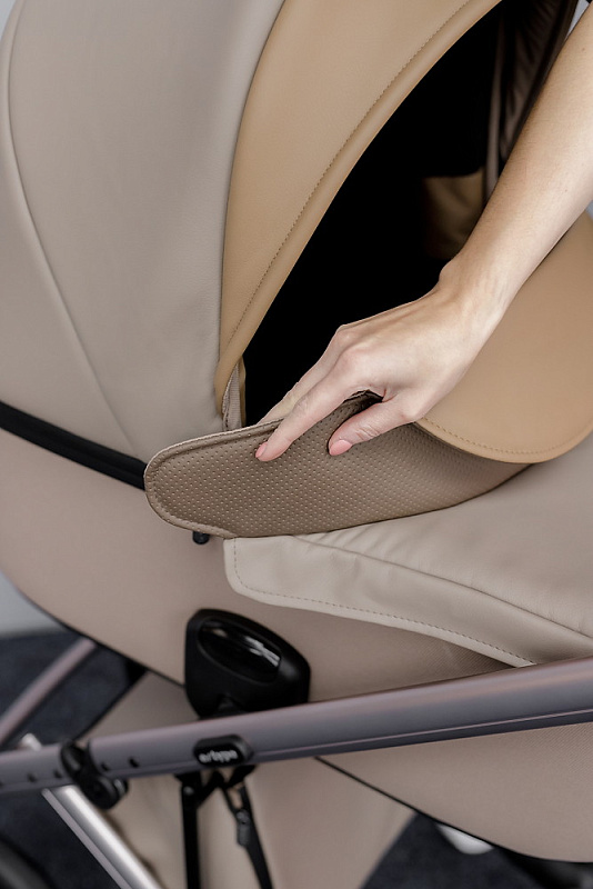 Система памяти кнопок поможет одной рукой изменить положение капюшона на люльке или блоке сиденья. В прогулочном блоке предусмотрена новая система регулировки спинки — откорректировать ее положение теперь проще. Пяти точечные ремни безопасности надежно удерживают малыша в коляске, но при этом не мешают ему двигаться. В коляске установлены колеса с системой Air Free, которые невозможно пробить и служат они в полтора раза дольше обычных. Рама в новой коляске складывается вместе с прогулочным блоком и теперь занимает меньше места в багажнике.