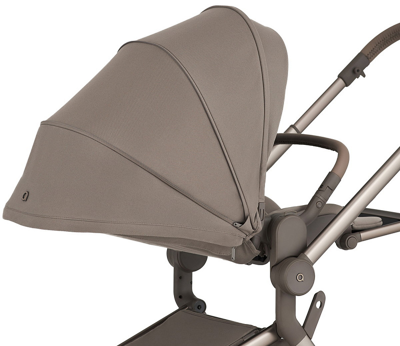 Большой капюшон с дополнительной секцией, который представлен в люльке и прогулочном блоке, обеспечивает надежную защиту вашего ребенка от непредвиденных погодных условий.
