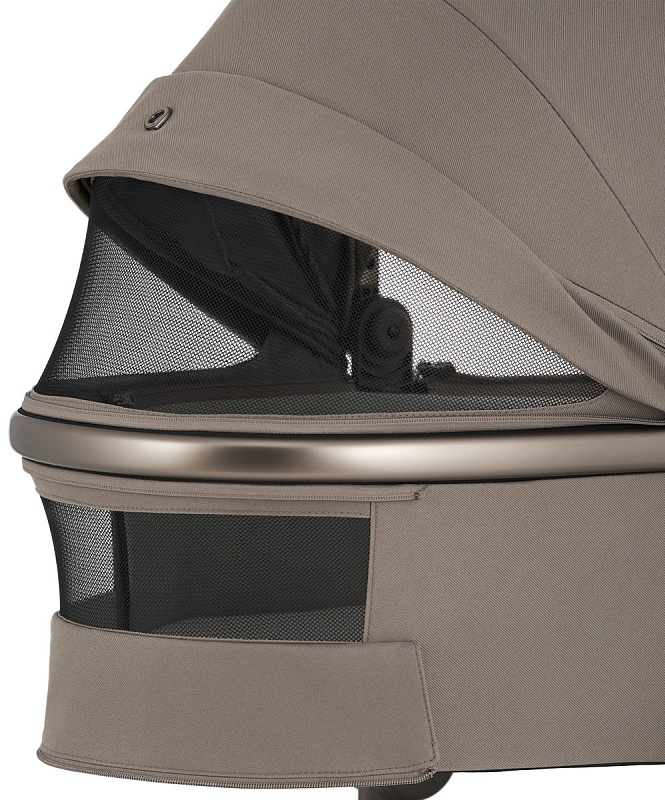 В коляске предусмотрена усовершенствованная система вентиляции, которая обеспечивает циркуляцию воздуха во всех необходимых местах — от капюшона и передней части люльки до подножки и капюшона прогулочного блока.
