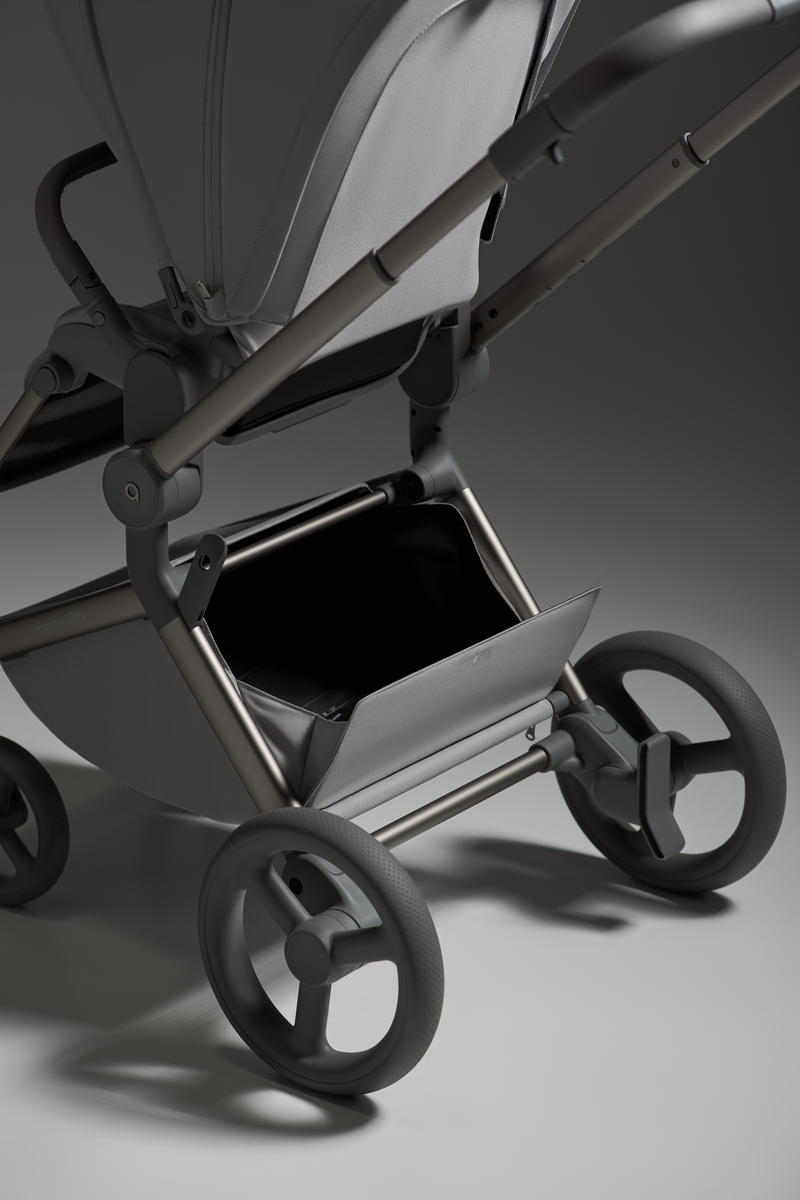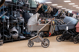 - Сложенная коляска устойчиво стоит самостоятельно, что позволяет максимально эффективно использовать пространство.