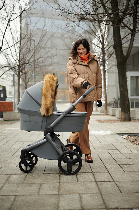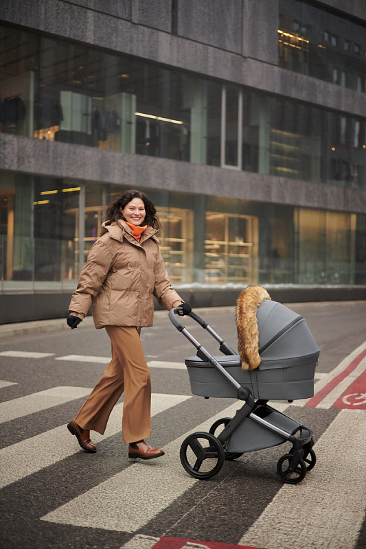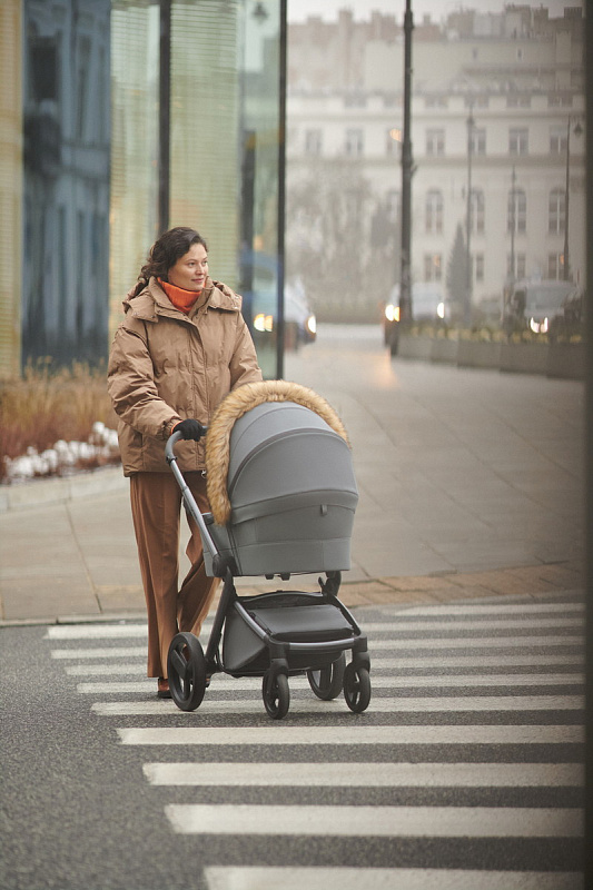 Люлька коляски компактно складывается для транспортировки или хранения. Капюшон люльки имеет дополнительный клапан, чтобы еще больше защищать ребенка от ветра, снега, дождя и солнца. Также люлька оснащена двойной вентиляцией (в передней части люльки и в капюшоне), что поможет вашему ребенку чувствовать себя более комфортно в теплое время года.