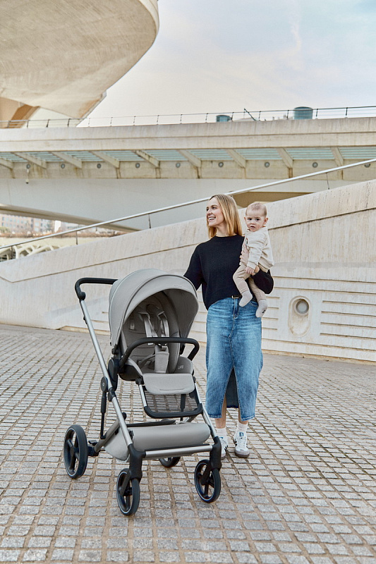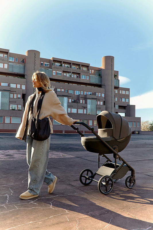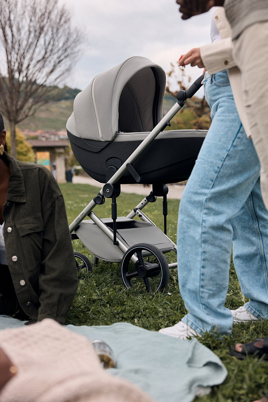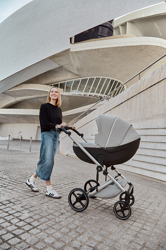Люлька EPP с использованием натуральных тканей и матрас Sorona создают безопасное и комфортное пространство для ребенка, а новые технологические безвоздушные колеса гарантируют, что поездка всегда будет плавной. Сидение складывается в обоих направлениях, позволяя родителям удобно переносить коляску при необходимости. Адаптеры высоты включены в комплект и обеспечивают большую гибкость и комфорт для семей разного роста.