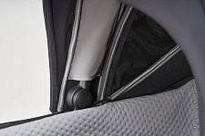 Серия PRO отличается качеством ткани. Каркас люльки в серии PRO выполнен из инновационного материала EPP (вспененный полипропилен), который используют при производстве детских автокресел и шлемов. Это позволило снизить вес спального блока на 1 кг и обеспечить более комфортный микроклимат внутри – тепло зимой и прохладу летом. Фактура люльки создается с помощью технологии лазерной абляции.
