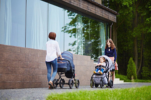 - Блок можно располагать в 2х направлениях по отношению к направлению езды коляски.