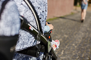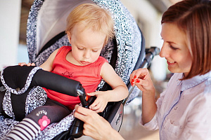 - 5-точечные ремни безопасности прогулочного блока предотвращают возможность случайного выпадения ребенка