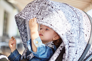 - Ткань обивки и капюшона, изготовленная по технологии UV50+ способна поглощать более 50% вредного ультрафиолетового излучения