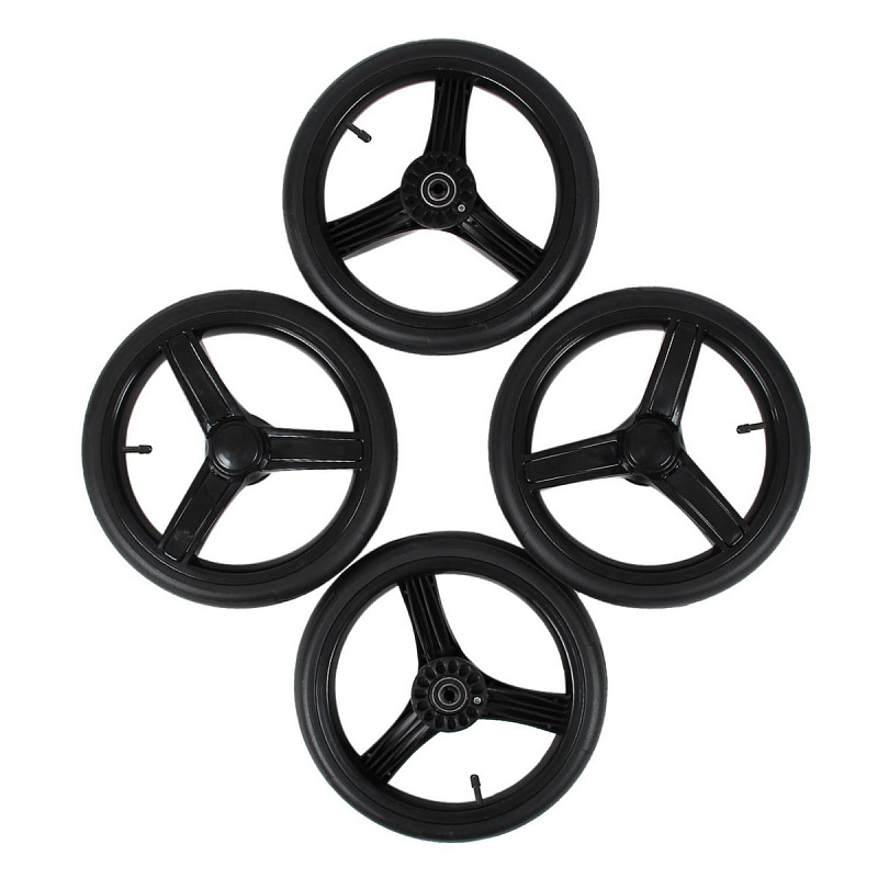 - резиновые надувные колеса позволяют гулять по любому бездорожью