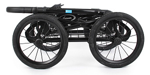 Коляска выполнена из текстиля и экокожи с водоотталкивающей пропиткой. Лёгкая модель на алюминиевой раме. Система Easy Fold позволяет без труда сложить раму, а система Anti Finger-Trap защитит руки во время процесса. Большие колеса делают коляску настоящим вездеходом - на ней вы преодолеете и снежную слякоть, и пляжный песок.