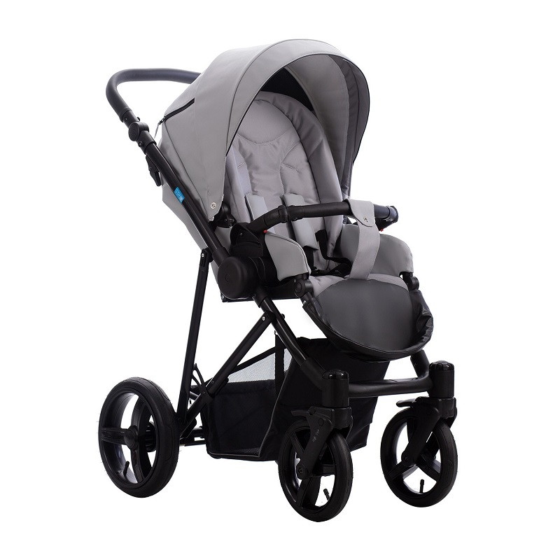 Коляска отличается лёгкостью и функциональностью. Практически полностью выполнена из экокожи - этот материал приятный на ощупь, красивый и простой в уходе. В случае загрязнения легко очищается влажной тканью. Современная алюминиевая рама с удобной системой складывания Easy Fold делает коляску легче, а система Anti Finger-Trap защитит руки во время складывания и раскладывания коляски. Системы SAS и DMS делают движение коляски мягким и комфортным, снижая вибрации при наезде на препятствия и препятствуя блокировки колес при отрыве от земли. Центральный тормоз Stop&Go позаботится о вашей обуви, а система выдвижных осей Hidden Axle - о багажнике вашего автомобиля при перевозке, достаточно спрятать оси внутрь конструкции и избавить автомобиль от возможных царапин. Передние поворотные колеса при необходимости блокируются.