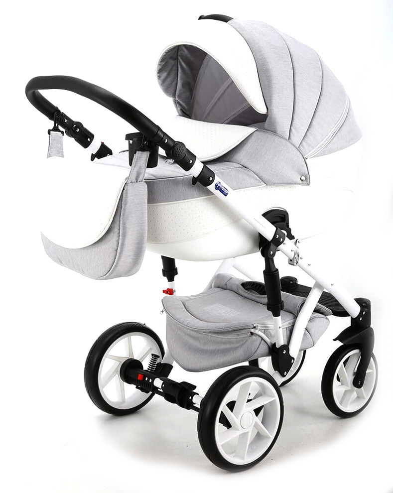 Детская коляска BeBe-mobile Fabiola 3 в 1 BF4 (СВ.СЕР+БЕЛ.БИТАЯ КОЖА)