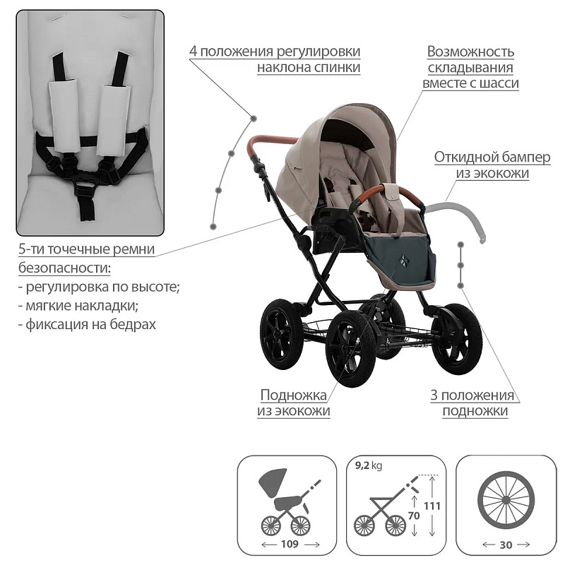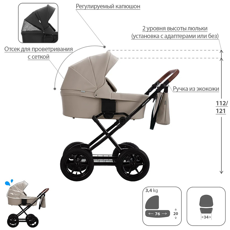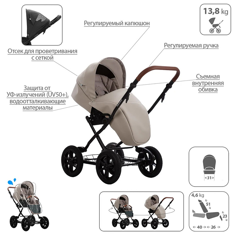 Обивка коляски: водоотталкивающая, съемная, с УФ-защитой 50+.