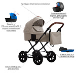 Конструкция данной коляски позволяет устанавливать на нее люльку, сиденье прогулочного блока или автомобильное кресло. Люлька и прогулочный блок реверсивные, их можно устанавливать как «лицом к маме», так и «лицом от мамы». Спальный вариант коляски предназначен для детей в возрасте от 0 до 7 месяцев (весом до 9 кг), прогулочный блок рассчитан на возраст от 7 месяцев до 3 лет (вес ребенка до 15 кг).