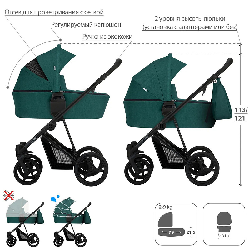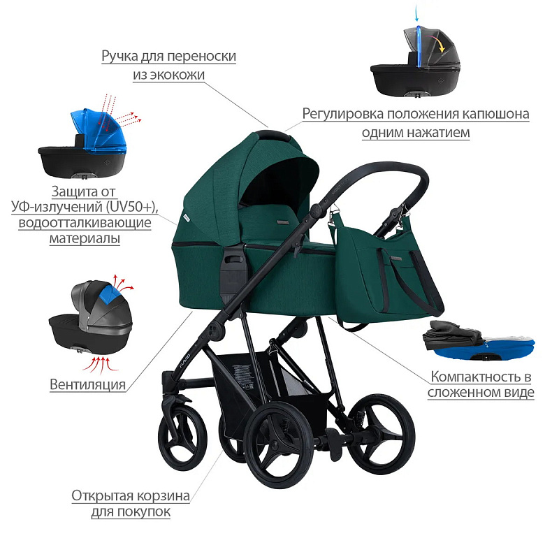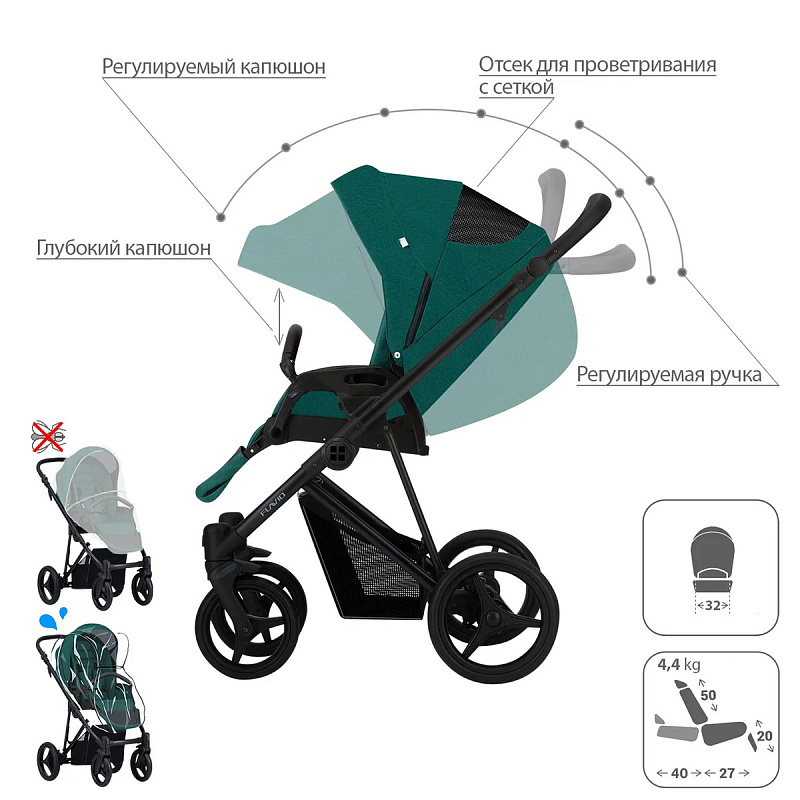 Обивка коляски: водоотталкивающая, съемная, с УФ-защитой 50+.