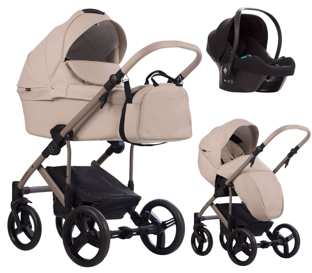 Детская коляска Bebetto Magnum Light Pro 3 в 1 с автокреслом Avionaut Cosmo 01 св.бежевая кожа/бежевая рама